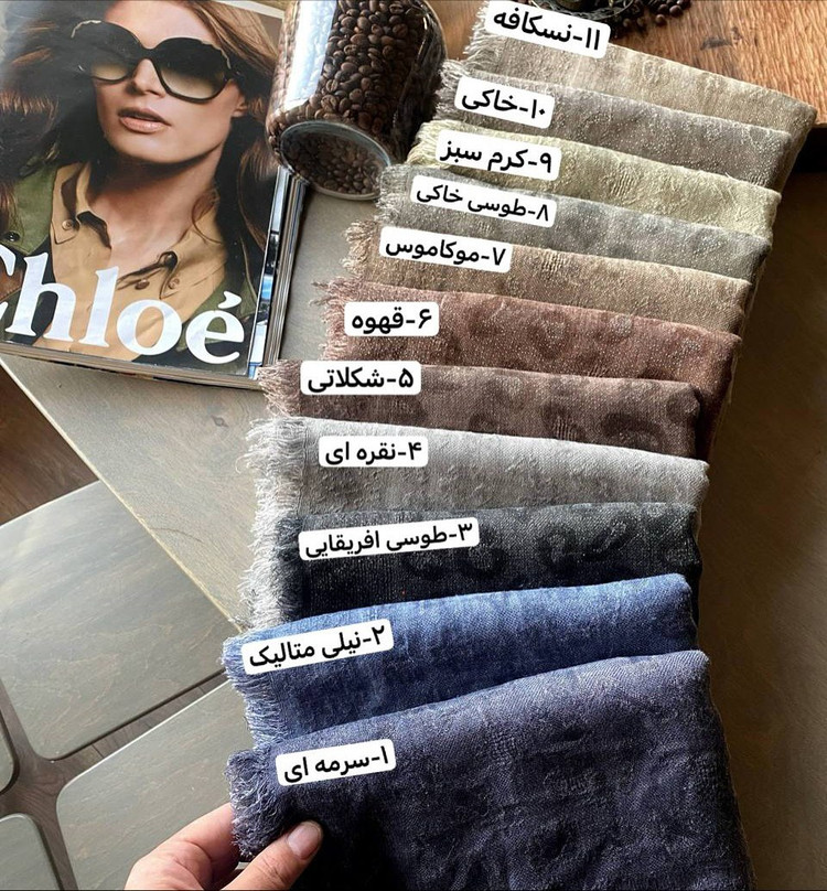 / خاکی / کرم سبز / طوسی خاکی / نقره ای / ذغالی / نیلی / سبز / نسکافه / موکا / سورمه ای / صورتی / زرد